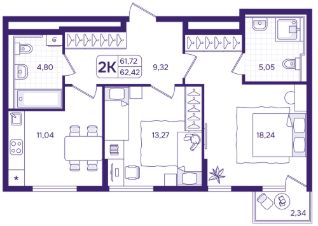 Здесь предусмотрена кухня, приватная родительская зона, детская комната и 2 санузла. Пространства для сна, учебы, семейного отдыха хватит всем членам семьи. Утренние сборы проходят без очередей. Благодаря просторной прихожей и большому количеству мест хранения в квартире легко поддерживать порядок, а дождь и снег останутся у входа.