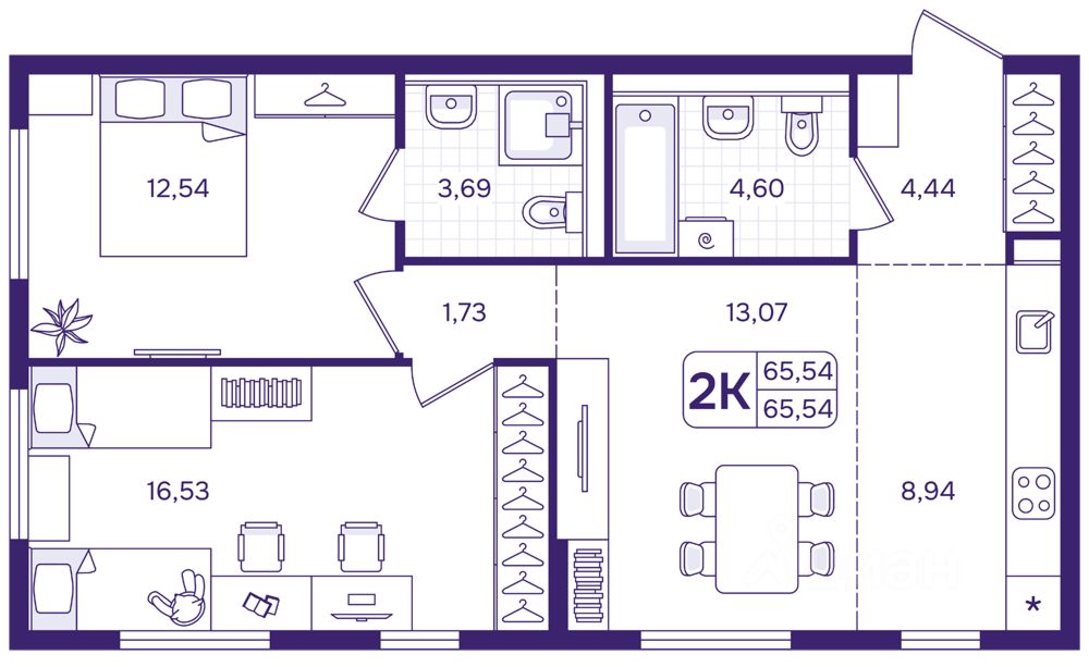Общая площадь65,54 м²