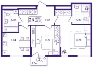 Здесь предусмотрена кухня, приватная родительская зона, детская комната и 2 санузла. Пространства для сна, учебы, семейного отдыха хватит всем членам семьи. Утренние сборы проходят без очередей. Благодаря просторной прихожей и большому количеству мест хранения в квартире легко поддерживать порядок, а дождь и снег останутся у входа.