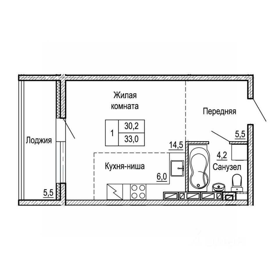 Общая площадь33 м²