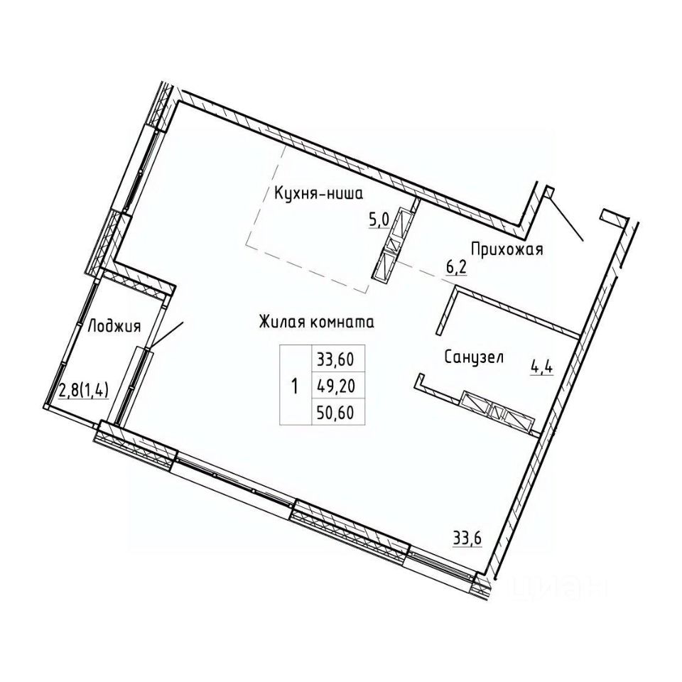 50,6 м²