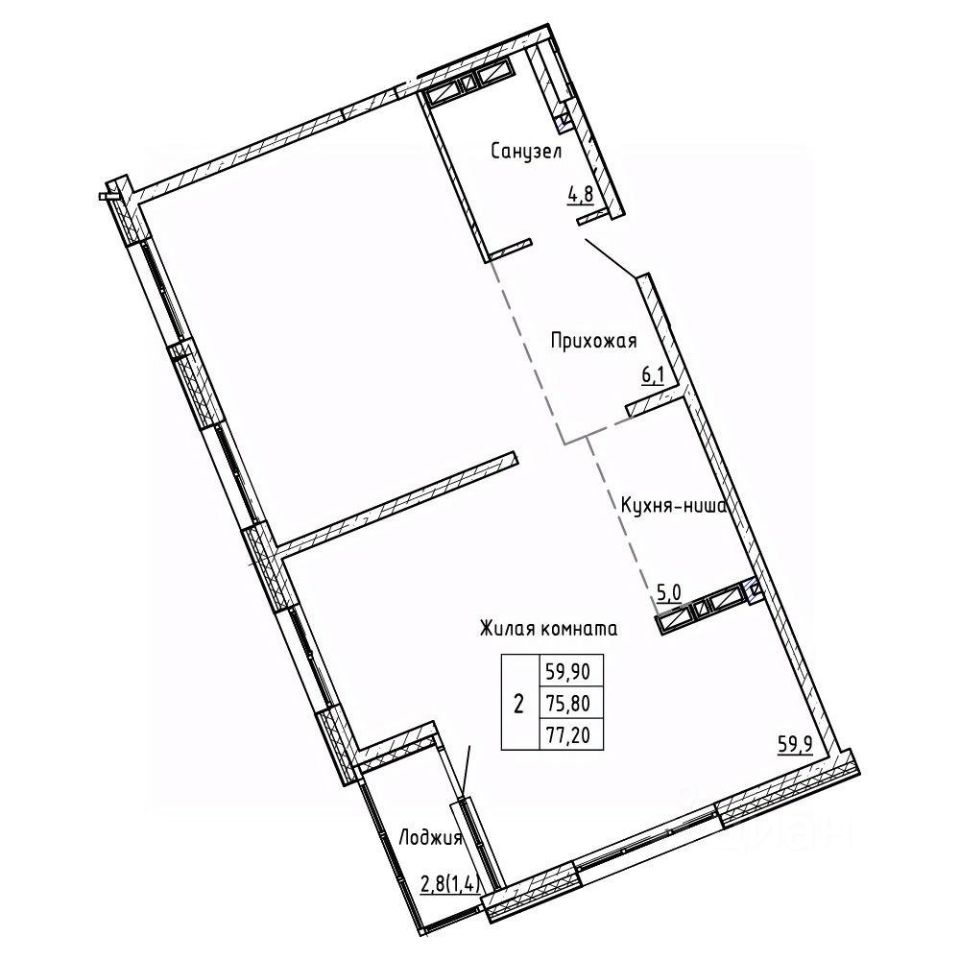 Общая площадь77,2 м²