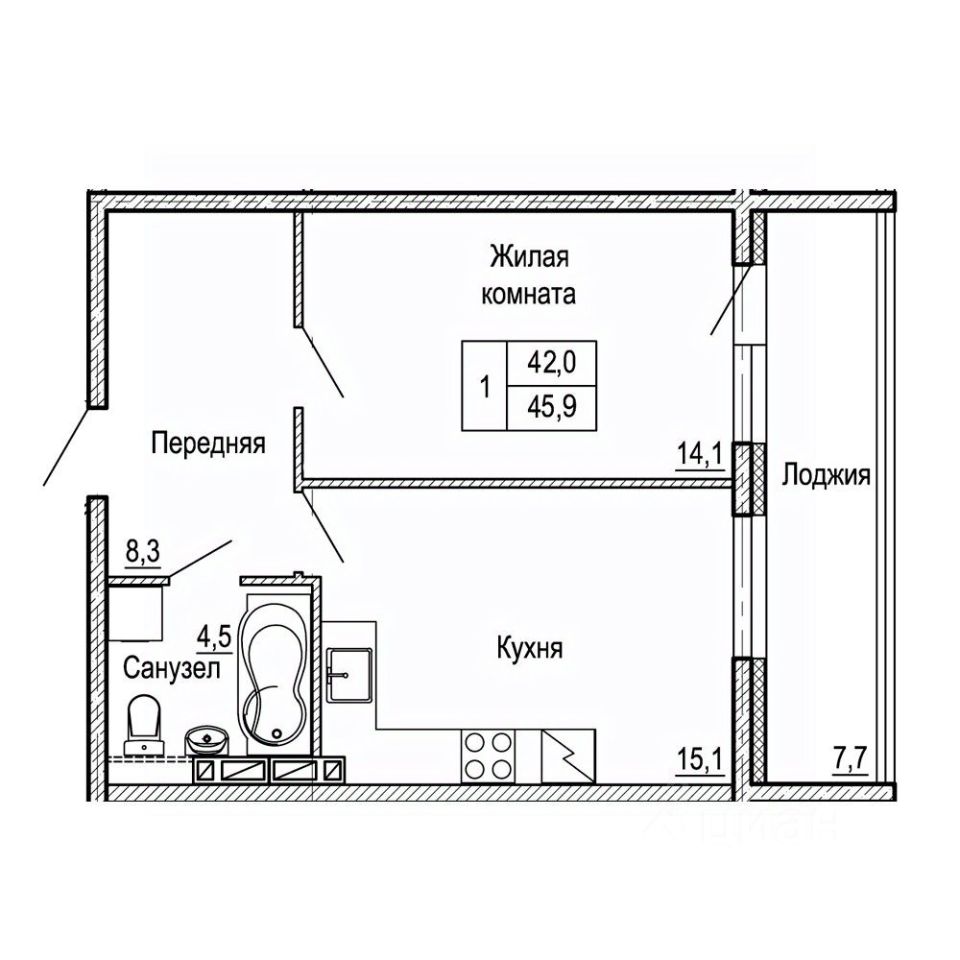 Общая площадь45,9 м²