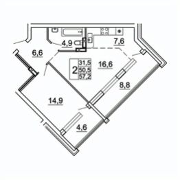 57,2 м²