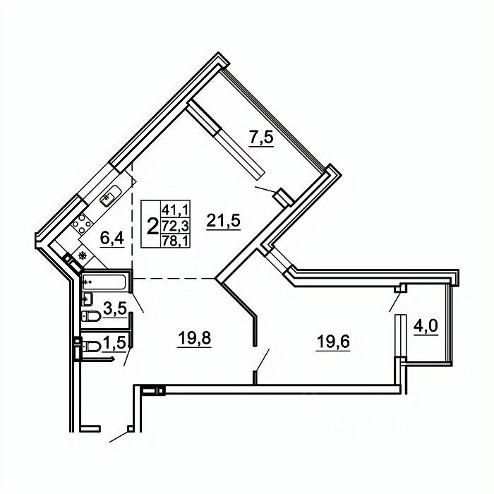 Общая площадь78,1 м²