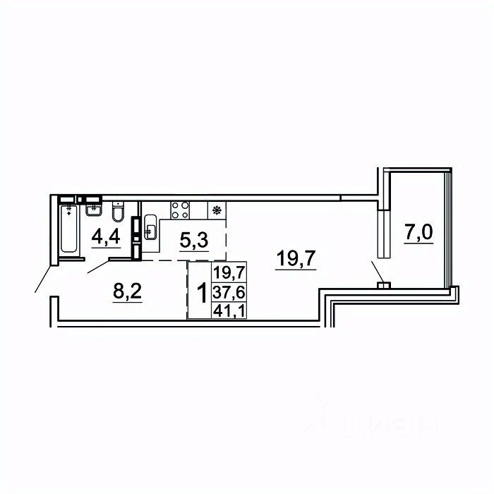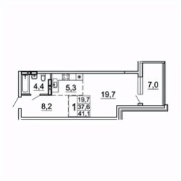 Общая площадь41,1 м²