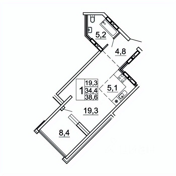 Общая площадь38,6 м²