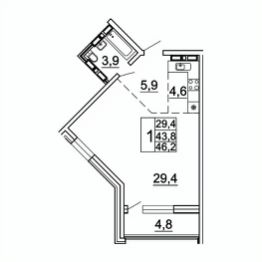 Общая площадь46,2 м²