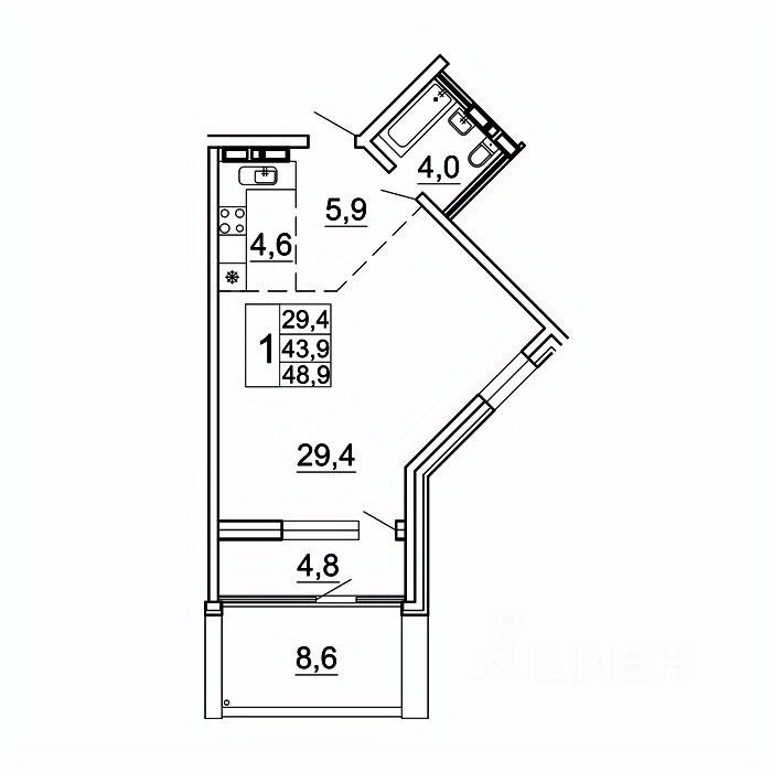Общая площадь48,9 м²
