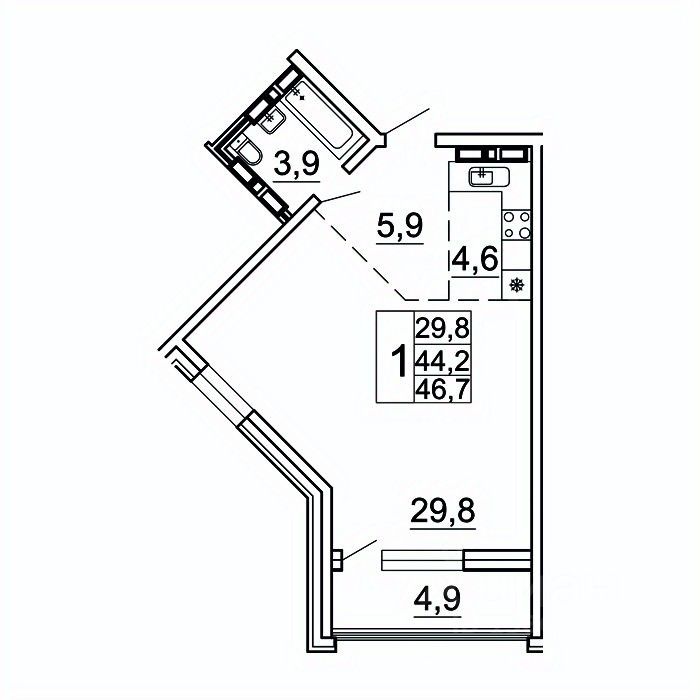 Общая площадь46,7 м²