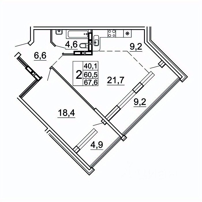 Общая площадь67,6 м²