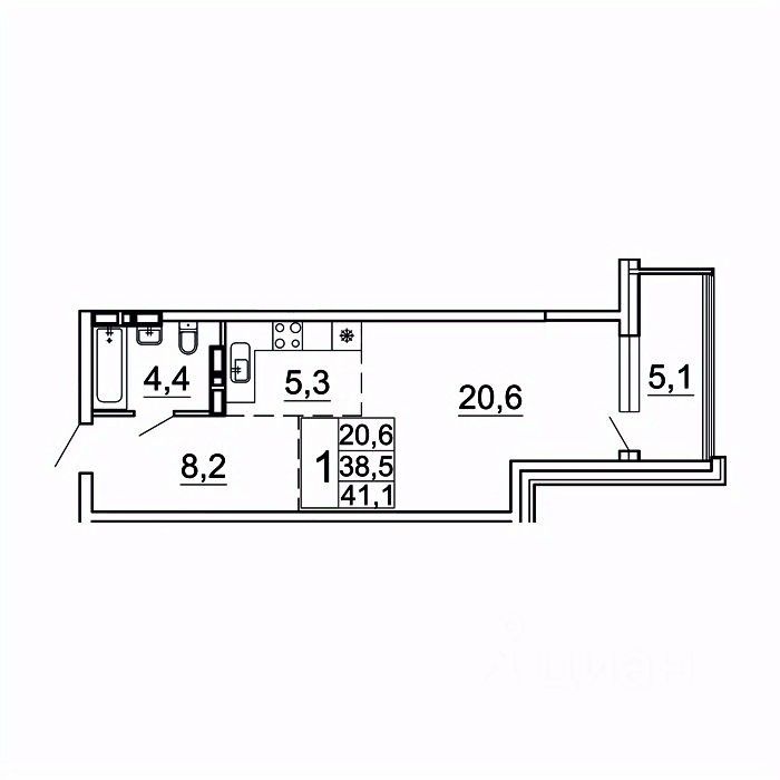 Общая площадь41,1 м²