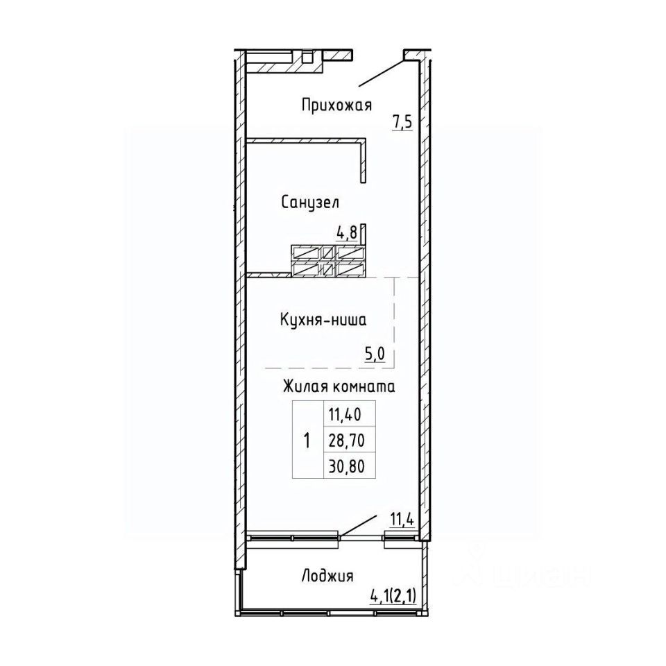 30,8 м²