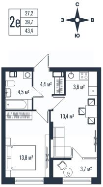 Общая площадь43,4 м²