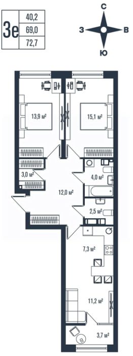 Продаётся 3-комнатная квартира в сданном доме (Тухачевского, 33к2 (Футурист)), срок сдачи: IV-кв. 2025, общей площадью 72.7 кв.м., на 2 этаже. Новый жилой комплекс "Футурист" от застройщика "СИК Девеломпент-юг" расположен по адресу город Владивосток, улица Карбышева.