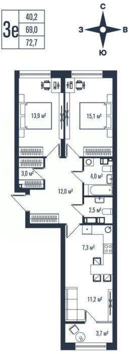 Продаётся 3-комнатная квартира в сданном доме (Тухачевского, 33к2 (Футурист)), срок сдачи: IV-кв. 2025, общей площадью 72.7 кв.м., на 12 этаже. Новый жилой комплекс "Футурист" от застройщика "СИК Девеломпент-юг" расположен по адресу город Владивосток, улица Карбышева.