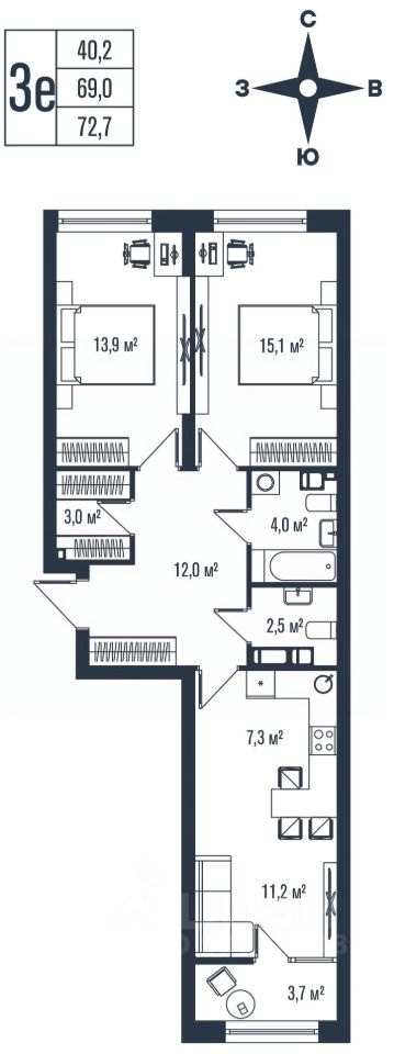 Общая площадь72,7 м²