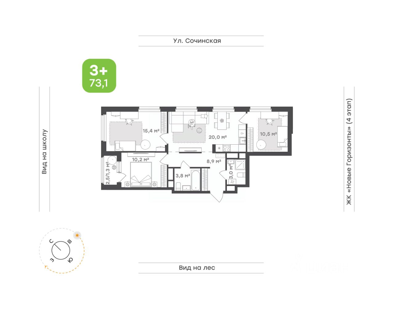 Просторная, светлая квартира, где каждый член семьи найдёт себе место