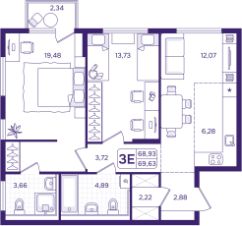 Просторная 3-комн. квартира с европланировкой в ЖК "Астон. А зори здесь тихие" на 2 этаже. Квартира без отделки, полностью готова к чистовой отделке и дальнейшему ремонту. Общая площадь: 69.63 кв.м., жилая: 45.28 кв.м., суммарная площадь гостиной-столовой с кухонной зоной: 18.35 кв.м. Европланировка, площадь комнат позволяет разместить в них все необходимое, а в просторной кухне-гостиной удобно как готовить, так и отдыхать. Квартира угловая, идеально подойдет любителям тишины и панорамных видов. В квартире один балкон, два совмещенных санузла. Высота потолков 2.87 м.