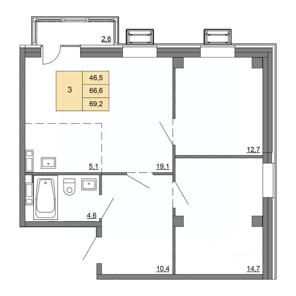 Общая площадь69,2 м²