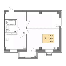 Общая площадь59,3 м²