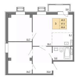 Продаётся 3-комнатная квартира в строящемся доме (Дом 6), срок сдачи: I-кв. 2028, общей площадью 69.6 кв.м., на 1 этаже. Новый жилой комплекс от Специализированного застройщика "Высота" расположен по адресу: г. Уссурийск, по ул. Пархоменко.