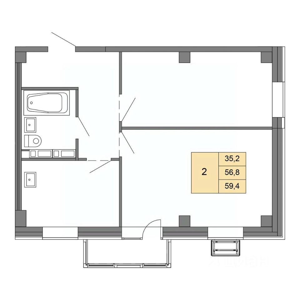 59,4 м²