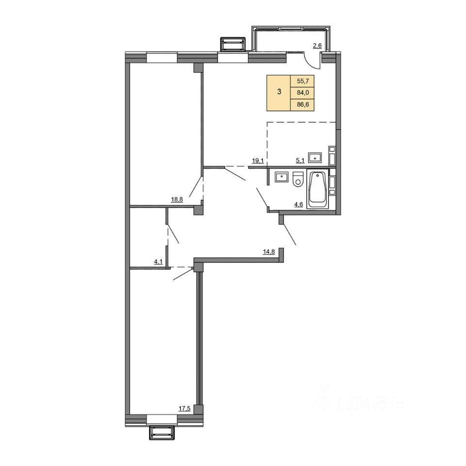 Общая площадь86,6 м²