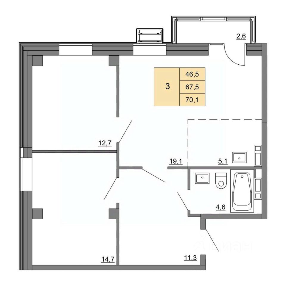 70,1 м²