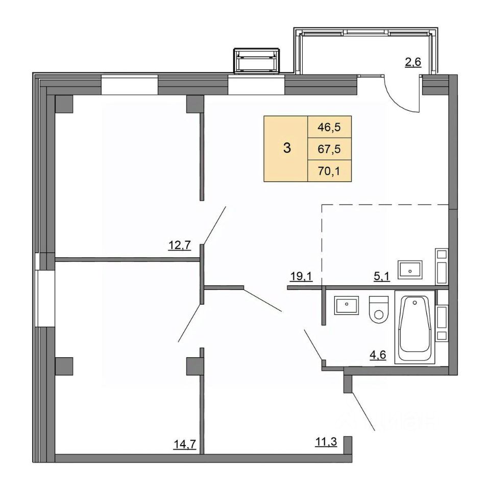 Общая площадь70,1 м²