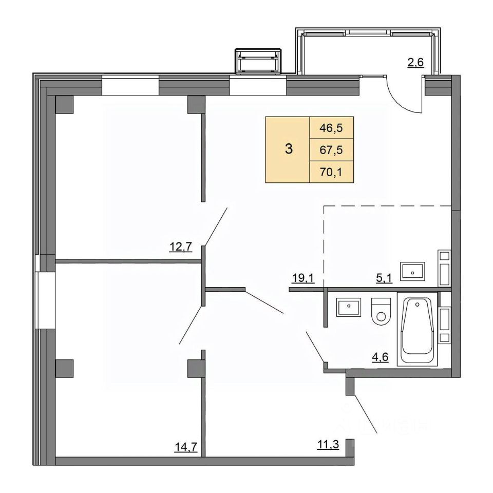 Общая площадь70,1 м²
