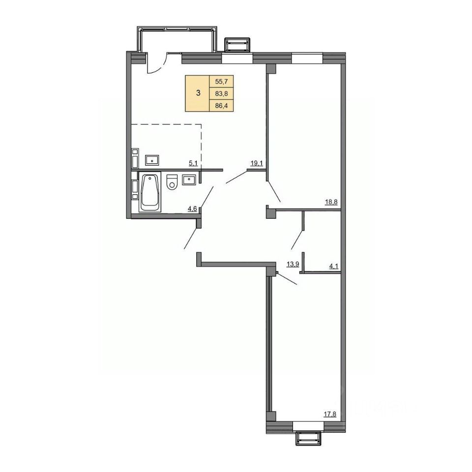 Общая площадь86 м²