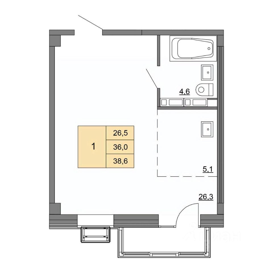 Общая площадь38,6 м²