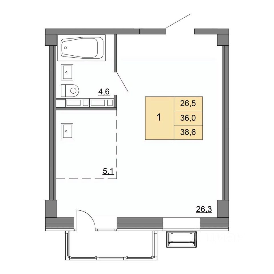 Общая площадь38,6 м²
