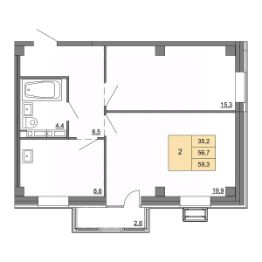 59,3 м²