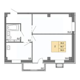 Общая площадь59,3 м²