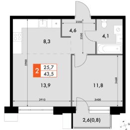 Продаётся 2-к квартира номер 601 общей площадью 43.5 кв.м. на 9-м этаже 12 этажного здания. Отделка Whitebox. Цена с учётом скидки.