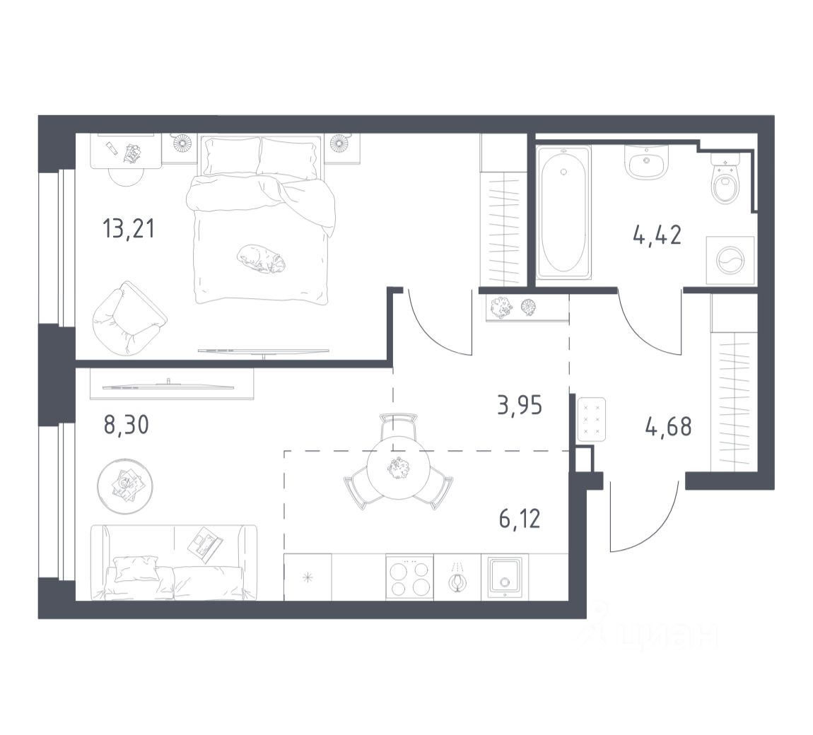 Строим кварталы для жизни с заботой о будущем. Предлагается 1-комнатная квартира комфорт-класса площадью 40.68 кв.м в корпусе 6КВ на 13-м этаже, в жилом комплексе "Квартал Нейбута".