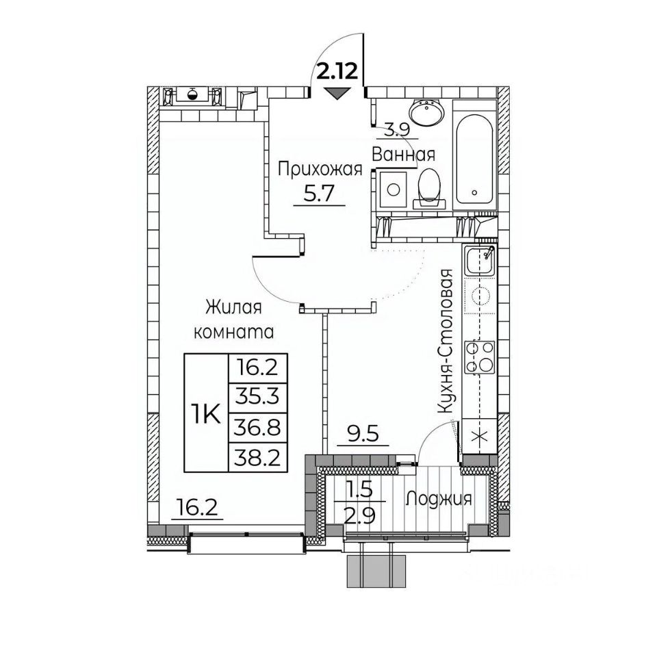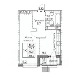 Общая площадь квартиры — 38.2 кв. м, этаж 6 из 23.