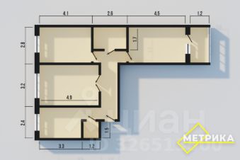 Ориентация окон: кухня и две комнаты выходят на северо-западную сторону, одна комната — на юго-восточную сторону.