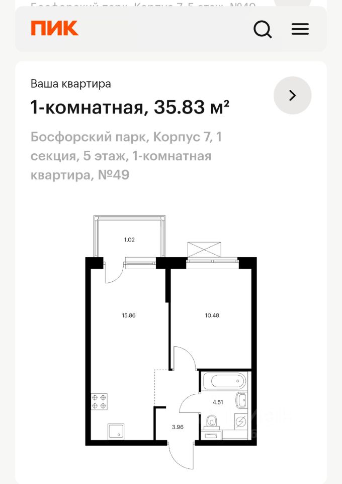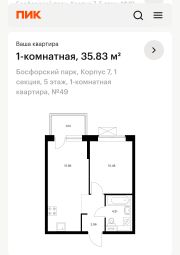 Квартира 35.8 кв.м + кладовая 4.7 кв.м.