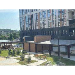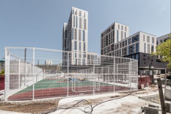 Комфортному пребыванию во дворе уделено также много внимания, как и проживанию в квартире. Детские и спортивные площадки, зоны отдыха располагаются как на стилобатной части между корпусами, так и на парковой территории рядом с комплексом. Проектом предусмотрено комплексное благоустройство и озеленение территории жилого комплекса.