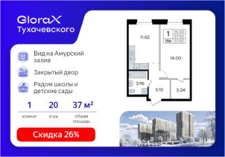 Продается 1-комн. квартира на 20-м этаже в жилом комплексе GloraX Тухачевского — современном проекте нового формата в престижном районе Владивостока. Общая площадь лота составляет 37,82 кв. м, из которых 14,00 кв. м отведено под жилую и 11,52 кв. м под кухонную зону. Номер квартиры - 156. Преимущества квартиры: однокомнатная квартира; высокий этаж; гардеробная. Преимущества проекта: • Панорамный вид на Амурский залив и зелёные сопки • Удачное расположение и транспортная доступность: Первореченский район, 20 минут до центра города • Закрытая охраняемая территория с доступом только для жителей • Эксклюзивное благоустройство: продуманное зонирование, игровые и спортивные площадки, арт-инсталляция, Тайный сад • Безбарьерная среда, видеонаблюдений, Wi-Fi на территории • Премиальный дизайн входных групп реcепшн и лаунж-зоной • Лапомойки, колясочные и туалеты на первом этаже • Подземный паркинг на 449 машиномест с доступом на лифте с жилых этажей • Индивидуальные кладовые на цокольном этаже от 2 до 10 м2 GloraX Тухачевского — это городское пространство нового формата, которое позволяет современным горожанам находить все необходимые атрибуты комфортной жизни внутри своего жилого комплекса. Весь комплекс спроектирован так, чтобы жить здесь было удобно и безопасно: светлые лаунж-зоны и ресепшн на входах в жилые корпуса, эксклюзивный дизайн мест общего пользования и придомовой территории, круглосуточная охрана, видеонаблюдение и даже детский сад в одном из корпусов все, что необходимо современному городскому жителю. GloraX Тухачевского находится в одном из самых престижных районов города с хорошей, давно сформировавшейся инфраструктурой и отличной транспортной доступностью. Отсюда легко добраться до центра города, других районов и даже пригорода как на собственном транспорте, так и на общественном. Квартал имеет прямой выезд на ул. Тухачевского, а рядом с комплексом расположена автобусная остановка на несколько маршрутов. Проект состоит из 3 монолитных корпусов, объединенных единым стилобатом. В комплексе предусмотрены: подземный паркинг с лифтом на жилые этажи, кладовые для хранения, благоустроенный двор без машин, детские и спортивные площадки, зоны для отдыха и прогулок. Эксклюзивный проект благоустройства территории разработан одной из лучших студий ландшафтного дизайна DEREVOPARK с фокусом на комфорт и удобство для всех жителей комплекса. Вся необходимая инфраструктура — магазины, школы, детские сады, остановки общественного транспорта — находится рядом. Узнайте подробности и подберите свою квартиру в GloraX Тухачевского — в отделе продаж уже сегодня. Цена указана при 100% оплате или стандартной ипотеке без субсидий. Узнайте подробности в Отделе продаж.