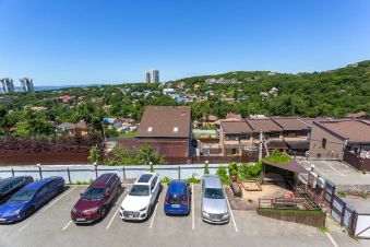 вечером — терраса с видом на закат и море.