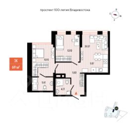 Общая площадь68,8 м²