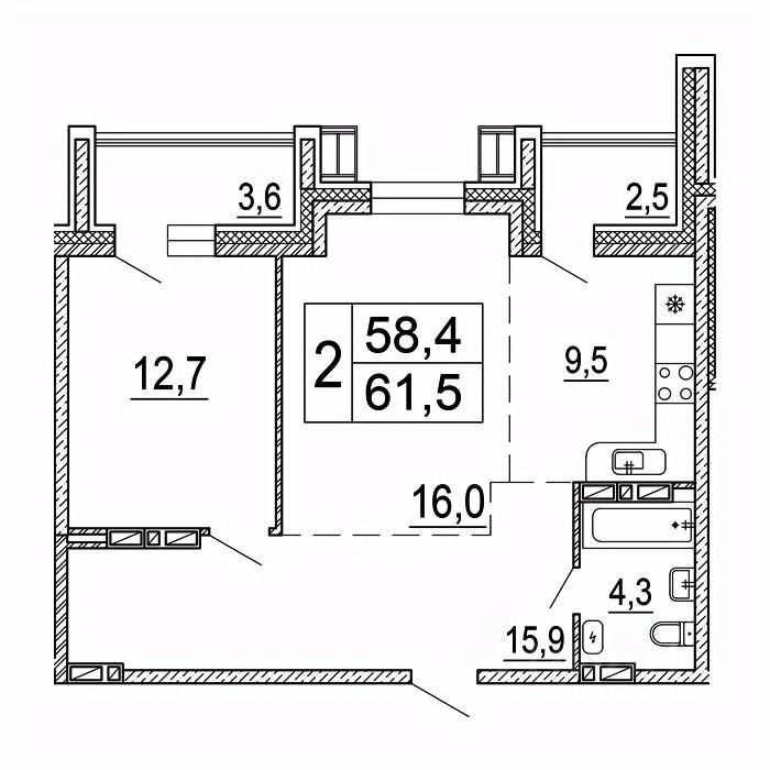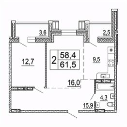 Общая площадь61,5 м²