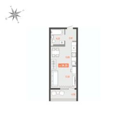 Продаётся 1-комнатная квартира в строящемся доме (Дом 1), срок сдачи: I-кв. 2028, общей площадью 34.35 кв.м., на 12 этаже. Для тех, кто строит будущее Большого Камня