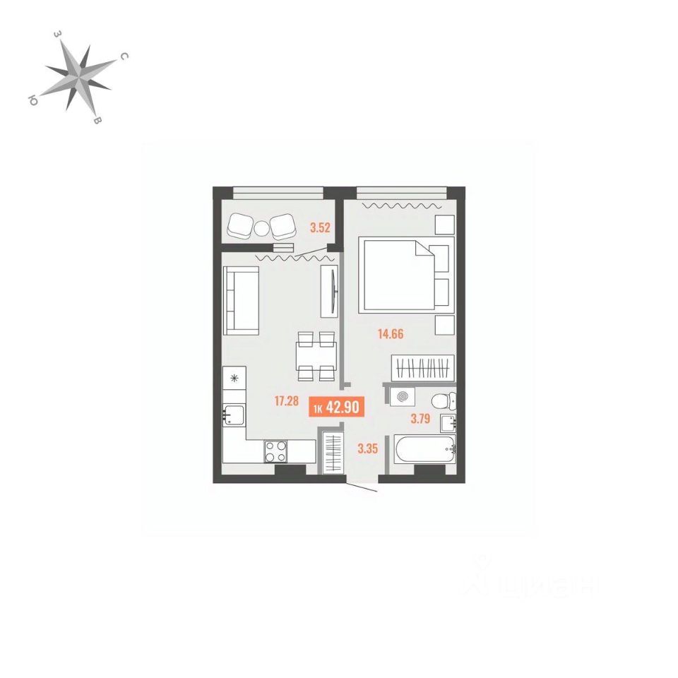 Продаётся 1-комнатная квартира в строящемся доме (Дом 1), срок сдачи: I-кв. 2028, общей площадью 42.9 кв.м., на 12 этаже. Для тех, кто строит будущее Большого Камня