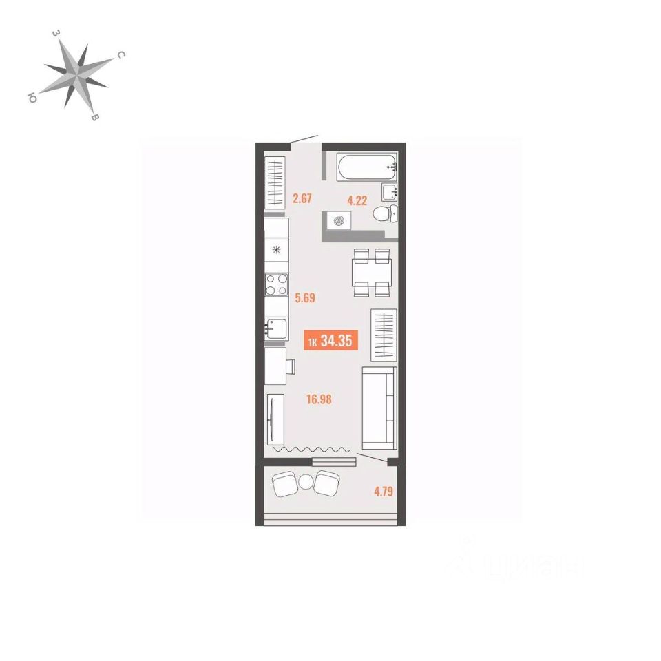 Продаётся 1-комнатная квартира в строящемся доме (Дом 1), срок сдачи: I-кв. 2028, общей площадью 34.35 кв.м., на 2 этаже. Для тех, кто строит будущее Большого Камня