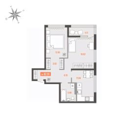 Продаётся 2-комнатная квартира в строящемся доме (Дом 1), срок сдачи: I-кв. 2028, общей площадью 62.91 кв.м., на 3 этаже. Для тех, кто строит будущее Большого Камня